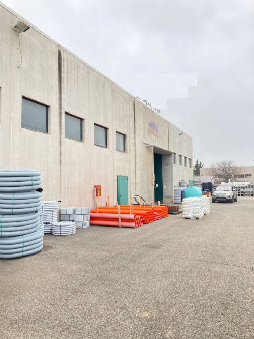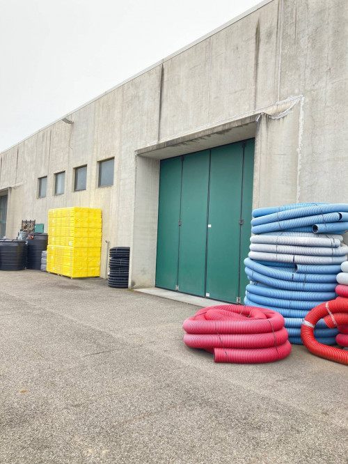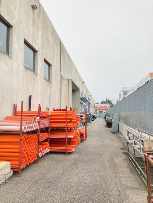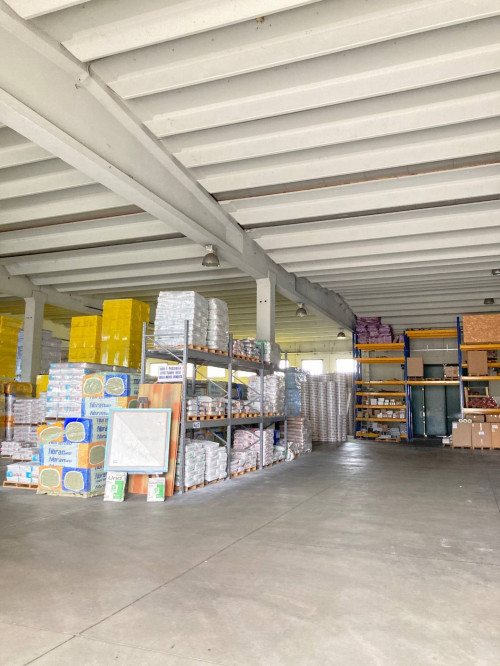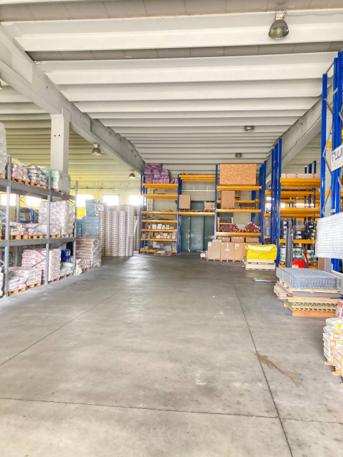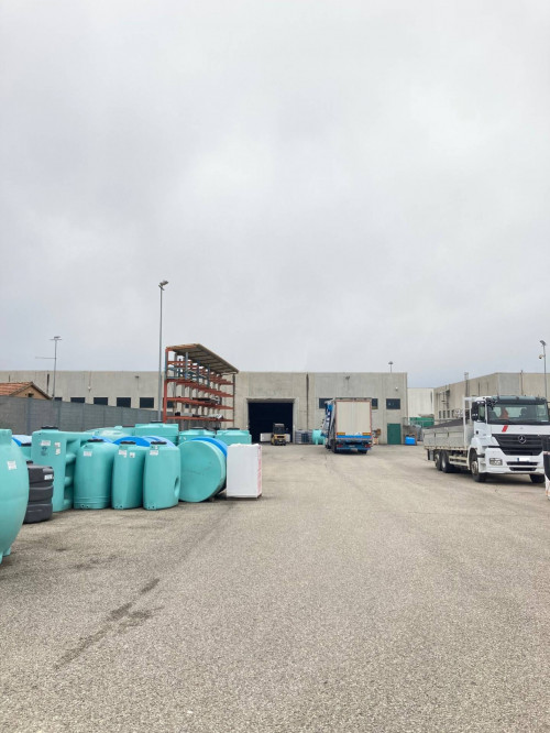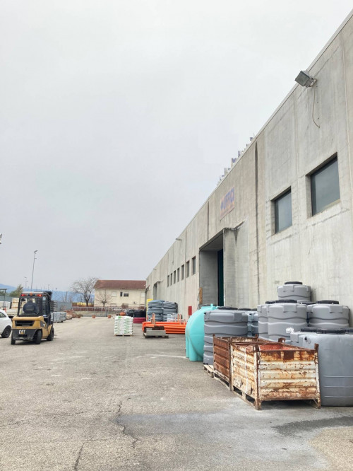 Il Capannone di ca 3.600 mq si sviluppa come area deposito al piano terra con doppio ingresso completo di servizi igienici, spogliatoi, antincendio, allarme e guardiania oltre a spazio reception e vano scale che conduce al piano primo di ca 400 mq dove si sviluppa un'area operativa e lavorativa composta da: ingresso, 5 stanze, ampia sala riunioni e completa di servizi igienici e spogliatoi.